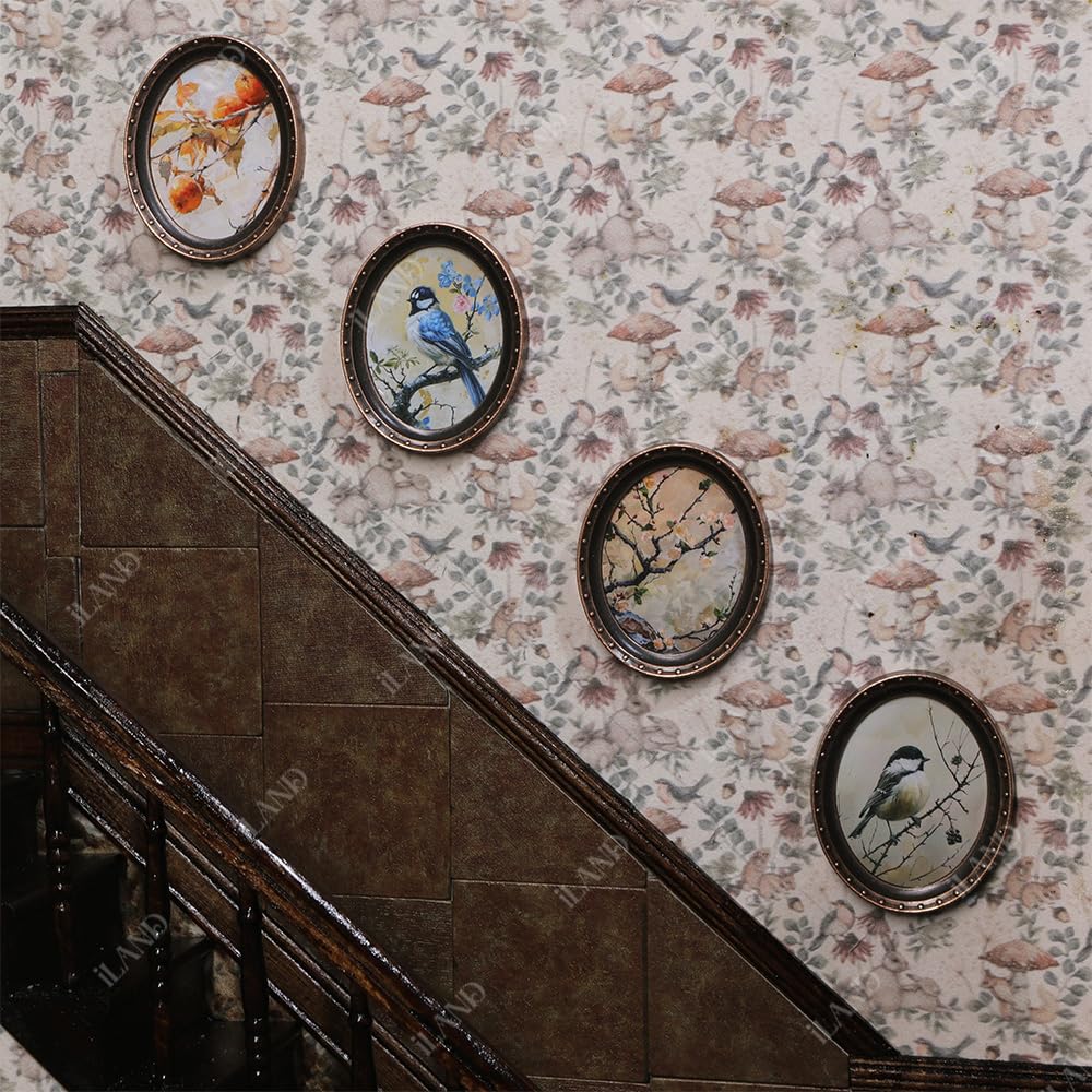 - ELABORATE MINIATURE DOLLHOUSE ACCESSORIES: You will receive four exquisite original dollhouse pictures, each beautifully presented in classical metal oval frames with four stickers, infusing your dollhouse with an air of artistic ambiance and aesthetic appeal.