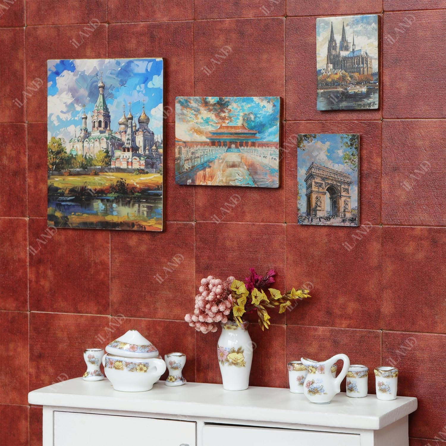 - Captivating Miniature Decor: Designed on an exact 1:12 scale, these architectural paintings include St. Basil's Cathedral, the Arc de Triomphe, Cologne Cathedral, and the Forbidden City. Meticulously designed, these pictures reflect the grandeur and historical significance of each structure, transforming into a miniature view of world heritage. As created by iLAND, which means you won’t find anywhere else those unique treasures.