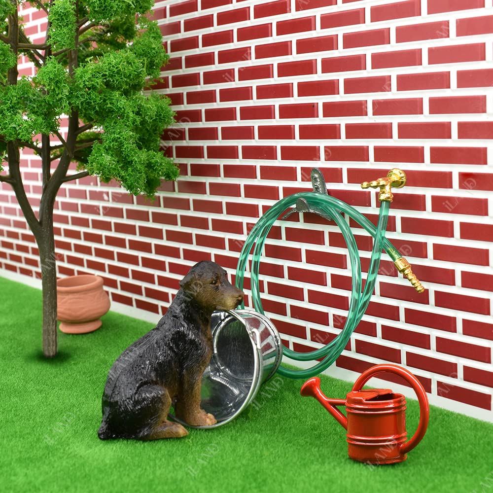 - - REALISTIC MINIATURES: The pail is made of tin plate, and the handle is movable. The watering pot is hollow with the shining red finish. The plastic water pipe is hollow and flexible with the golden water faucet. All is so realistic that makes your mini garden full of life atmosphere easily.