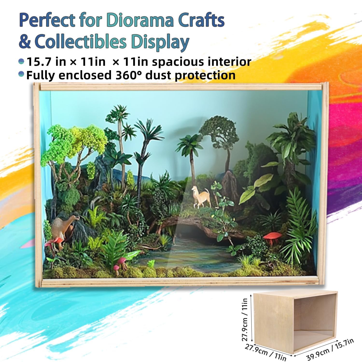 iLAND Wooden Diorama Box Large Display Boxes for Collectibles Figures Miniatures and a Dollhouse Room Box Unfinished 15.7“x 11”x11“ Quick-Build Without Screws or Glue, Dustproof Smooth Sturdy